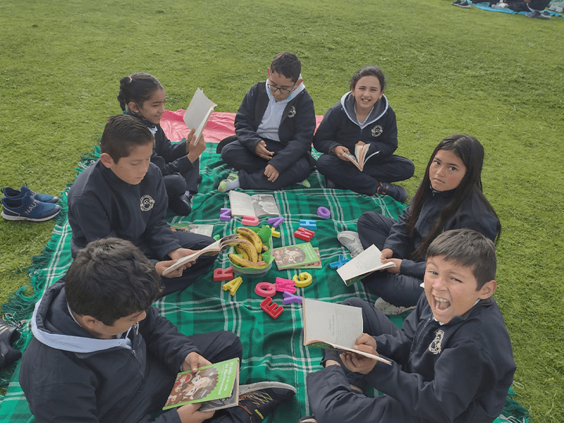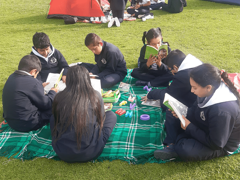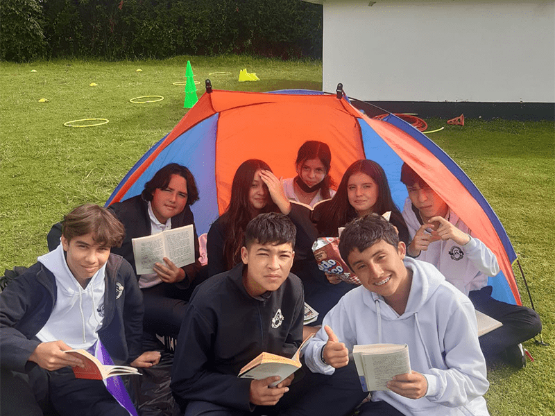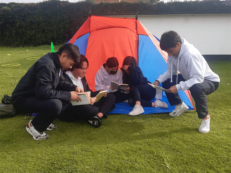 ¡Nada mejor que una lectura al aire libre! Nuestros estudiantes Cumbristas pueden dar fe de ello, puesto que le damos la libertad a que escojan sus lecturas favoritas mientras comparten en espacios abiertos con otros compañeros, disfrutando así de un magnífico encuentro con autores de renombre que sirven a la inspiración.